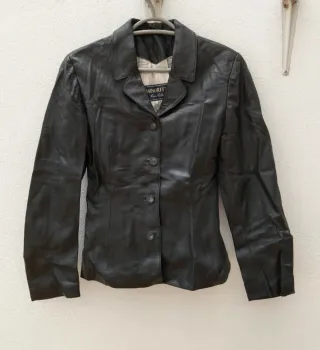 Preciosa chaqueta de cuero, elegante y en buen estado. - Corte clásico. - Tres botones delanteros. - Diseño liso.