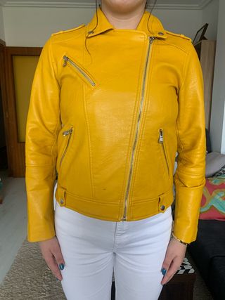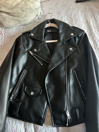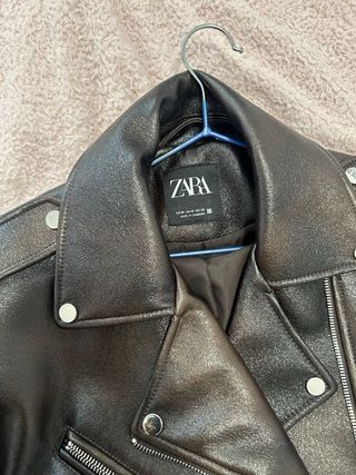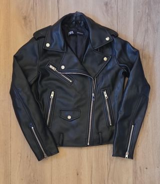 Chaqueta de cuero sintético de la marca Zara. - Diseño moderno y versátil. - Acabado liso y elegante. - Cierre frontal. - Muy bien cuidada.