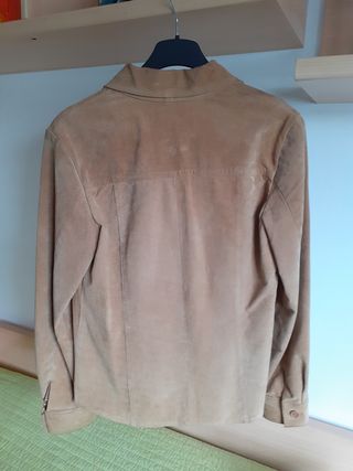 Chaqueta-sobrecamisa de ante beige. Es de ZARA. Talla M. - Cierre de botones. - Dos bolsillos en el pecho.