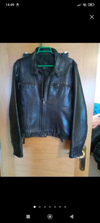 Chaqueta cuero piel negra. Talla M. Tiene 2 usos, está como nueva. - Cierre de cremallera frontal. - Cuello redondo. - Puños y bajo elásticos.