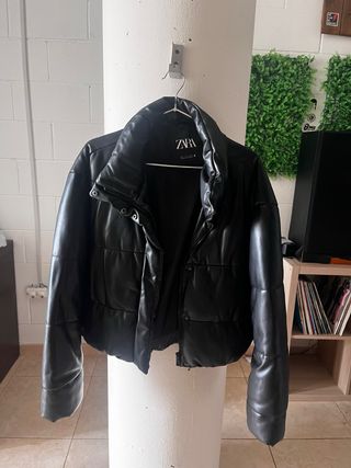Chaqueta Puffer Cuero Sintético Zara Negra