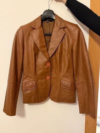 Chaqueta de cuero de color marrón. Un clásico atemporal para cualquier guardarropa. - Material: Cuero. - Cierre de botones. - Bolsillos frontales. Le falta un botón pero tiene el de repuesto en la etiqueta, hay que ponerlo