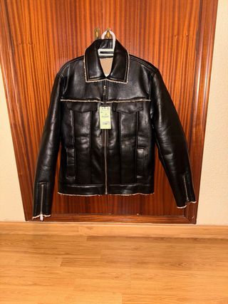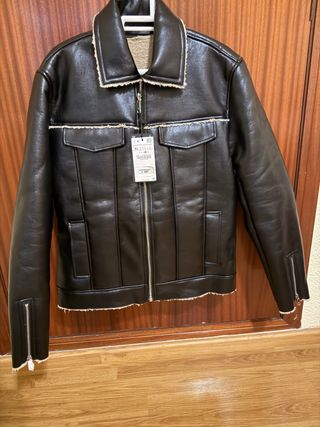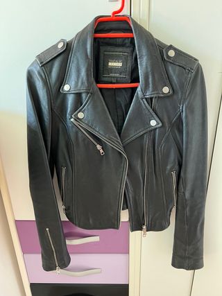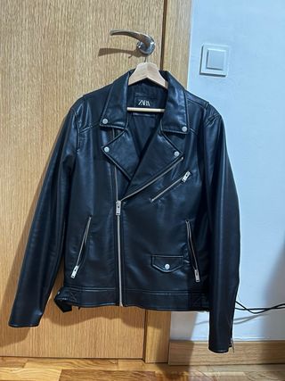 Chaqueta de cuero Zara, talla S. Presenta ligeros signos de uso.