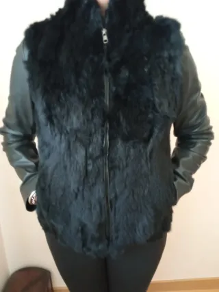 Conjunto de cazadora de cuero negro tipo motero o biker de Zara y chaleco de piel de conejo también negro. Se pueden llevar juntos, dando un efecto de chaqueta mixta de cuero y piel, muy bonita o usar las dos prendas por separado. Medidas en las fotos. Ambas prendas están usadas pero en buen estado. El chaleco tiene una rozadura en la entrada del bolsillo derecho. Cierre de cremallera en ambas prendas y con bolsillos ambas prendas también. Prendas modernas, ponibles y ambas prendas juntas, abrigan mucho. Chaqueta piel, abrigo pelo, chaquetón piel