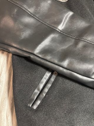 Chaqueta de estilo moderno con detalles en contraste. - Diseño de cuero sintético. - Forro interior de pelo sintético. - Cierre de cremallera frontal. - Bolsillos con solapa en el pecho. - Puños con cremallera.