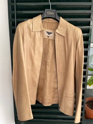 Chaqueta de cuero beige muy calentita y elegante