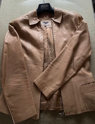 Chaqueta de cuero color camel, Talla M, usada pero bien conservada
