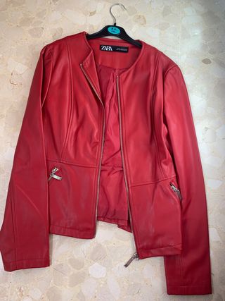 chaqueta de cuero roja de Zara