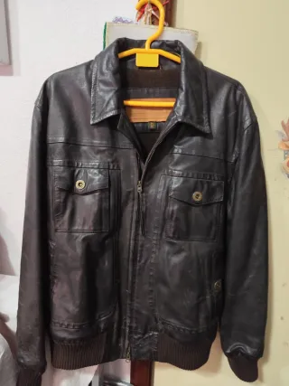 Chaqueta de cuero en color marrón, talla XL. Es de Calidad de Cuero Grueso y la chaqueta pesa mucho por lo que se nota que es buena, se puede probar ain compromiso. - Diseño atemporal. - Cierre de cremallera frontal. - Bolsillos laterales.