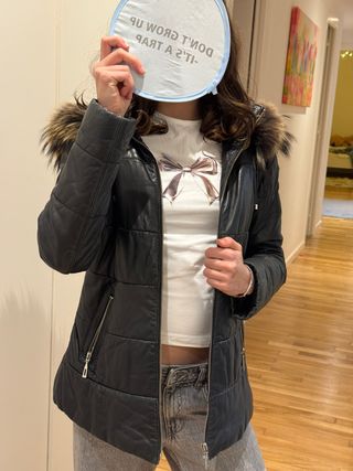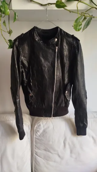 Cazadora estilo biker con acabado en efecto piel. se vende porque fue un regalo y no pude cambiarlo de talla porque perdí el ticket. Descuento 10€ del producto original como se ve en las fotos - Cierre de cremallera. - Cuello solapa. - Bolsillos con cremallera.