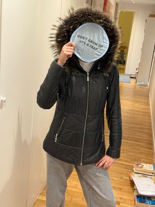 Chaqueta de cuero sintético con un diseño moderno y elegante. NUEVA, sin estrenar, con etiqueta. Es talla XS Oversized, era para mi hija (que siempre lleva talla S) y le va grande. Comprada hace un mes y medio.