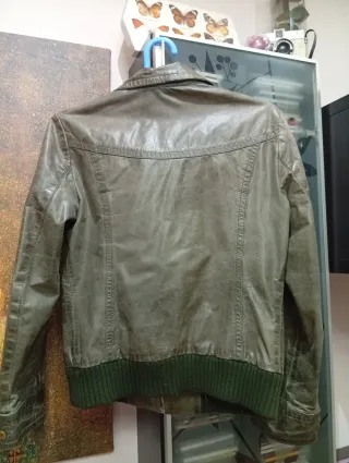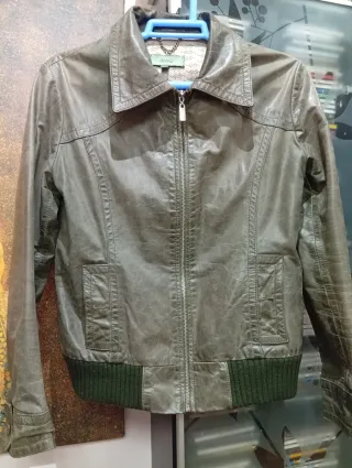 Cazadora de cuero en color marrón. Diseño moderno y versátil. - Cierre de cremallera frontal. - Bolsillos con cremallera. - Cuello mao. -Elástico en los laterales que hace que ajuste super bien. He cambiado de estilo y estoy vendiendo tesoros que te encantarán. Visita mi perfil.