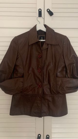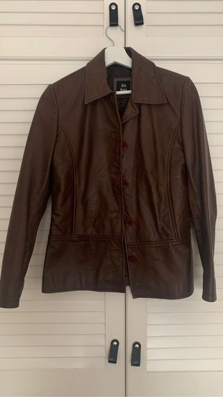 Cazadora de cuero para mujer de la marca Blauer. - Color marrón. - Talla S. Precio negociable