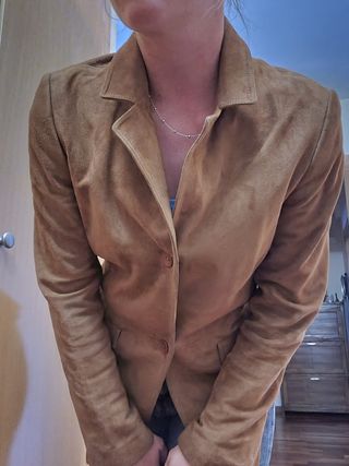Cazadora de cuero de la marca KOROSHI. - Diseño con cuello redondo. - Cierre de cremallera frontal. - Bolsillos con cremallera en el pecho y laterales. - Detalles acolchados en hombros y mangas. - Abrigo de borreguito por interior. - Precio original 119€ me costo 83€ se ve en la etiqueta.