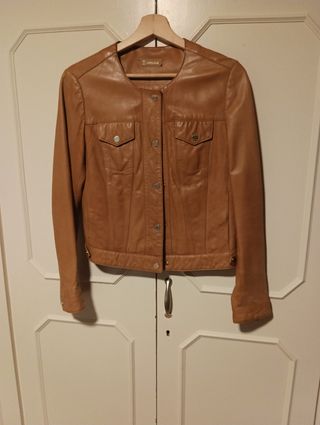 Preciosa chaqueta de cuero, de Massimo Dutti. Talla S/M. Color cuero.