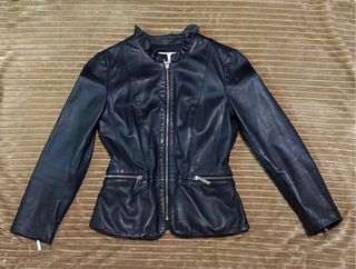 Chaqueta de cuero sintético, en perfecto estado. Es de color azul marino y talla M. - Diseño elegante y moderno. - Cómoda y fácil de combinar. - Ideal para cualquier ocasión.