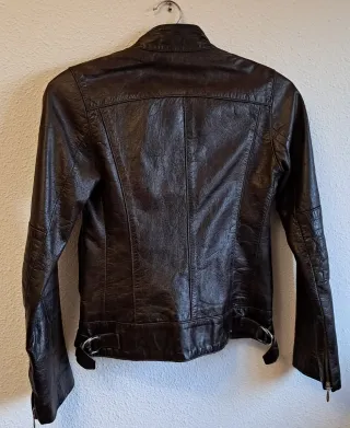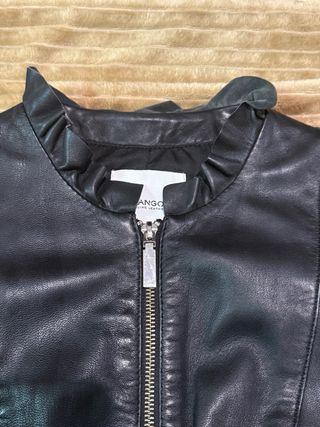 Preciosa chaqueta de cuero genuino de Mango, talla S. Esta en muy buen estado. - Auténtica piel de primera calidad. - Diseño elegante y favorecedor. - Cierre de cremallera. - Perfecta para cualquier ocasión.