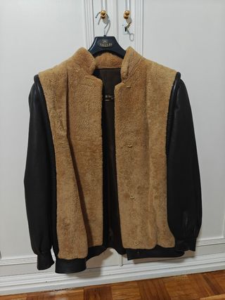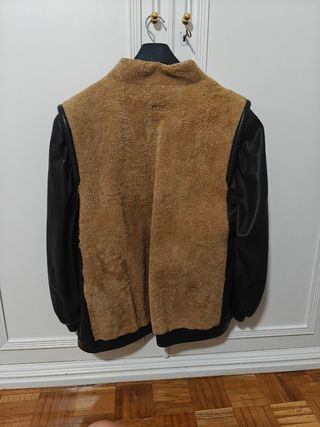 Preciosa chaqueta de cuero y borrego. Es una prenda cálida y estilosa, ideal para los días más fríos. - Confeccionada en suave cuero marrón y borrego beige. - Diseño combinado de cuero y tejido. - Cierre de botones. - Talla M-L