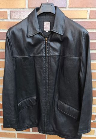 Chaqueta cazadora de cuero para hombre, de la marca Miguel Berbel. Es de color negro y talla L (equivalente a 42-44 o 52-54). Se encuentra en buen estado. - Cremallera frontal. - Bolsillos funcionales. - Diseño clásico.
