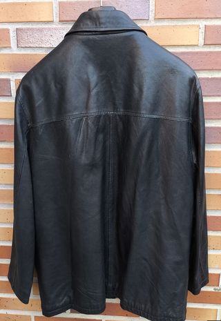 Cazadora de cuero de la marca Imperio Clandestino. - Diseño clásico. - Cierre de cremallera frontal. - Cuello redondo con botón. - Puños ajustables. -Entrega en Majadahonda gratis o tarifas wallapop.