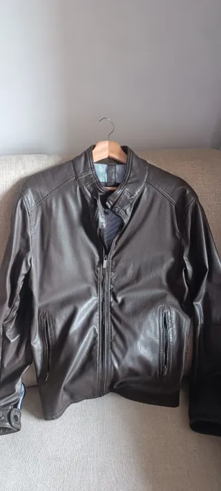 Preciosa chaqueta de cuero sintético de Zara para hombre, talla L. Esta un poquito desgastada en el cuello, pero muy poco