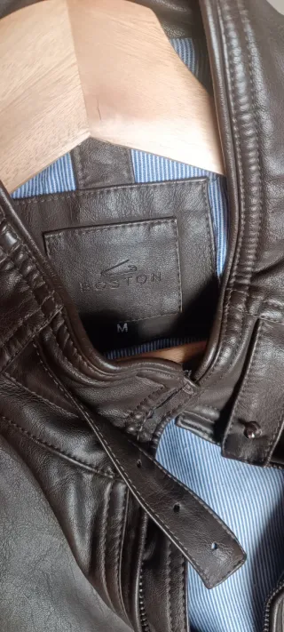 Chaqueta marca Boston en color marrón, talla M. Muy poco uso. Bolsillos interiores y ventilación en las axilas. Imitación cuero.