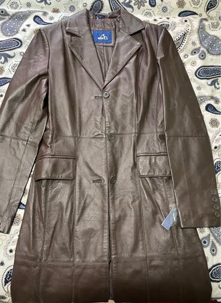 Abrigo de cuero estilo blazer de la marca Burton. - Cierre de un botón. - Bolsillos frontales. - Forro interior estampado. - Diseño clásico.
