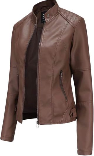Chaqueta Cuero Sintético Mujer Hiseng Marrón