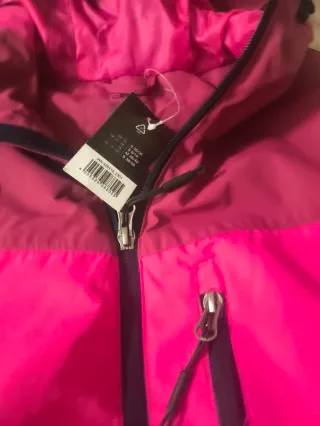 Bonita cazadora chaqueta que puedes usar diariamente o para esquiar o ir a la nieve. Para 10-12 años. Tiene bolsillos para poder meter el forfait, la capucha la puedes quitar, y tiene puños elásticos que puedes meterle el dedo y así asegurar que no se sube. Muchos bolsillos y cremallera en las axilas para refrigerar.