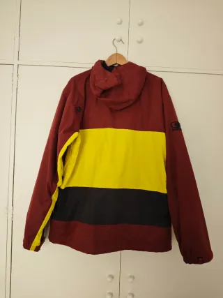 Chaqueta Bonfire con diseño tricolor - Diseño de tres colores: granate, amarillo y negro. - Capucha grande para ponerse con casco - Cremalleras en los bolsillos laterales.