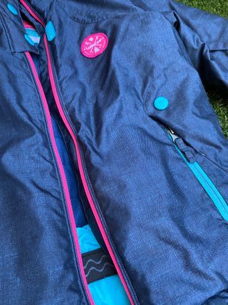 Chaqueta de esquí de la marca Wedze, perfecta para actividades al aire libre. En perfectas condiciones. - Diseño en color azul turquesa y detalles en rosa. - Cremallera frontal. - Bolsillos con cremallera.