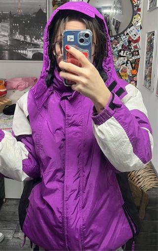Chaqueta de esquí vintage de los años 90, Eastwind, violeta. En perfecto estado. Con bastantes compartimentos. Se le puede quitar y poner la capucha y abriga bastante. No indica talla pero es como una 40.