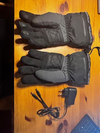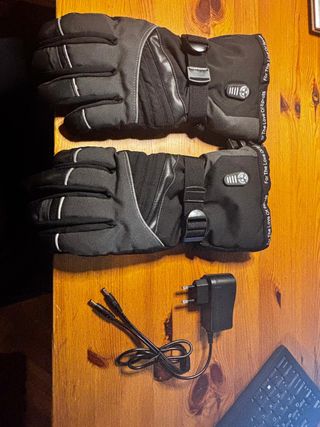 Guantes térmicos para moto o esquí, diseñados para mantener tus manos calientes en climas fríos. Incluyen dos baterías recargables y cargador específico. Impermeables, transpirables, resistentes al viento y al agua - Cierre ajustable en la muñeca y en antebrazo. - Indicador LED de estado. - Trabilla interna de seguridad para enganchar a chaqueta.