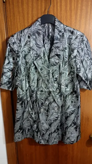 Chaqueta llamativa con un diseño brillante, perfecta para eventos especiales, hecha a mano. - Tejido ligero con efecto lentejuelas. - Doble botonadura frontal. - Bolsillos delanteros falsos. - Forro interior negro. - Medida en cm en la foto