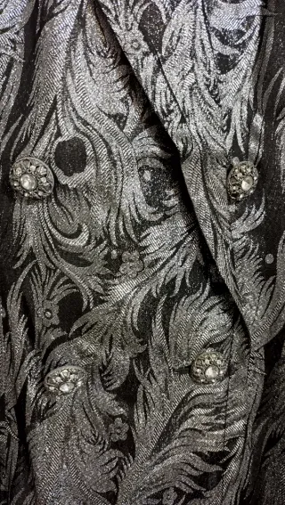 Chaqueta de fiesta con un diseño llamativo y brillante. - Tejido con hilos plateados. - Tacto suave y ligero. - Ideal para eventos especiales.