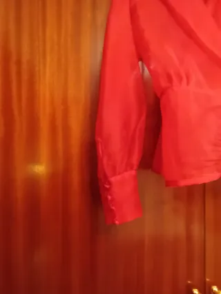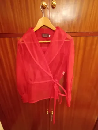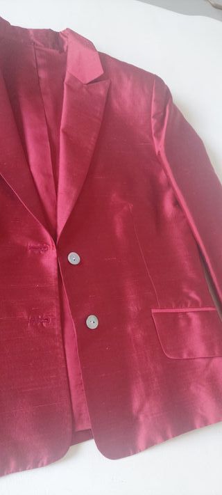 Elegante chaqueta de fiesta confeccionada en seda salvaje,de tono rojo cereza . En mi perfil también está el vestido que va a juego,el conjunto puede comprarse junto o cada pieza por separado,el conjunto 110, por separado cada pieza su precio. Solo usado en una ocasión. - Diseño de Miguel Berbel. - Color rojo vibrante. - Ideal para eventos especiales.