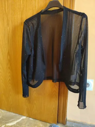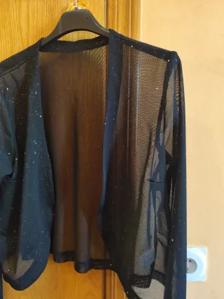 Chaqueta de fiesta con un toque brillante, ideal para eventos especiales. - Diseño abierto. - Tejido con hilo plateado.muy comoda y suave no envio