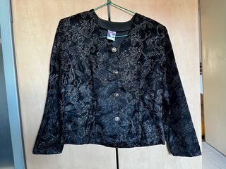 Elegante chaqueta de fiesta con un diseño de terciopelo y detalles brillantes. - Manga larga. - Cierre de botones. - Estampado floral.