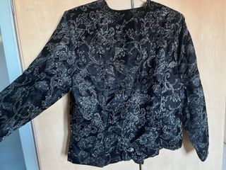 Elegante chaqueta torera de fiesta, ideal para complementar tu atuendo. - Diseño con apliques florales y pedrería. - Mangas cortas. - Cierre abierto. - Marca talla S pero es una M ó 38. Visita mi perfil y ahorra en envíos comprando lotes. #fiesta #ceremonia #navidad #cocktel