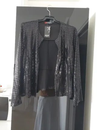 Chaqueta de fiesta con un diseño brillante y llamativo. Ideal para eventos especiales. - Cubierta exterior con lentejuelas. - Forro interior satinado.