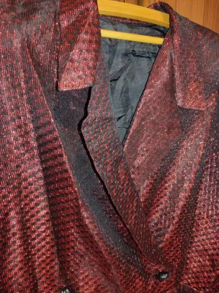 Chaqueta fiesta brillo rojo y negro, hecha a mano.