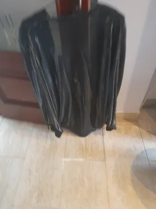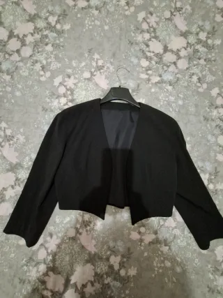 Chaqueta negra corta tipo torera con bolitas plateadas. queda muy bonita. miy suave al tacto. Dice M pero para S tamb queda bonita... mas holgada