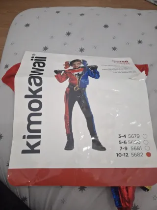 Disfraz de Harley Quinn de la marca Kimokawaii, ideal para fiestas o disfraces. - Talla 10_12 - Diseño bicolor rojo y azul. - Incluye mono y chaqueta.