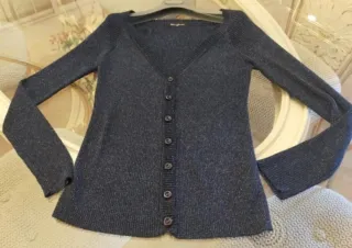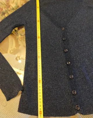 Chaqueta de punto con un toque festivo y elegante. Su diseño combina tonos azules y plateados, perfecta para ocasiones especiales. - Manga larga. - Cierre de botones. - Cuello en V. No quedo en persona para vender este artículo solo envíos a través de la aplicación de Wallapop por Correos o impost, no agencia GLS