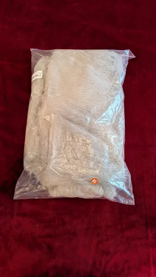 Compré este chal fino para usar el día de mi boda pero al final no lo utilicé. Queda genial con vestido de novia y la caída queda muy bonita. Tiene una pequeña mancha pero con la caída de la tela no se ve (incluida en las fotos)