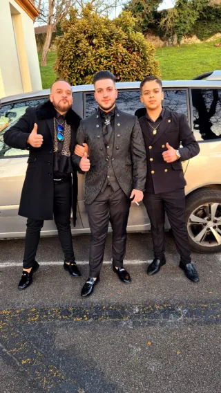 Traje de Novio Negro con Adornos