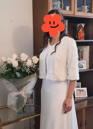 Chaqueta bolero de pelo de la marca Veneno en la piel (no me deja seleccionarlo en marcas). Comprada para vestido de novia pero finalmente sin usar. Puesto para la foto.