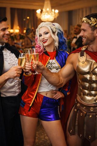 Disfraz Carnaval mujer Harley Quinn inspirado en la novia del Joker, talla L, marca Partylandia. NUEVO, sin estrenar, procedente del cierre de la tienda Tejidos Riaza, taller artesano español especializado en teatro, Carnaval y espectáculos. Incluye: chaqueta bicolor roja y azul, camiseta y pantalón corto a juego. Diseño icónico, atrevido y reconocible al instante, ideal para destacar y ser el centro de todas las miradas en Carnaval. Tejidos llamativos, buen ajuste y acabado cuidado, muy superior a disfraces de producción masiva. Una elección segura para quien busca estilo, personalidad y un disfraz con carácter propio. #disfraz