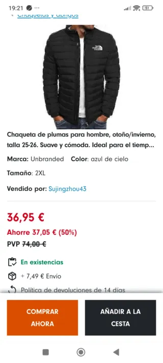 Chaqueta de plumas hombre de segunda mano Madrid