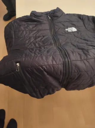 Chaqueta de invierno The North Face en color negro. Es una prenda acolchada con relleno de plumas, ideal para mantener el calor. - Diseño acolchado. - Cierre de cremallera frontal. - Bolsillo con cremallera en el pecho. - Revisersible. - Como nueva. - Me la borró App Wallapop. - 100% Original - Talla 12 años.